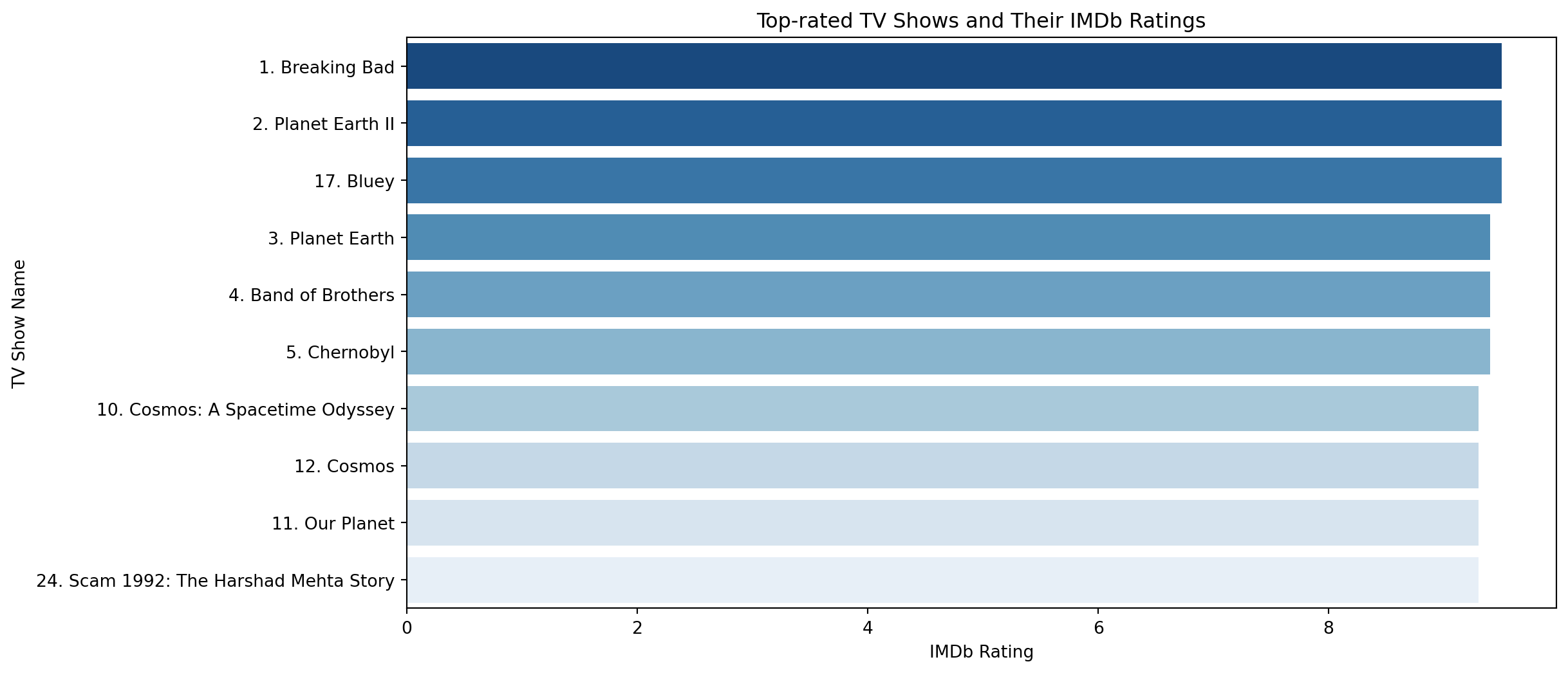 plt.title('Top-rated TV Shows and Their IMDb Ratings')