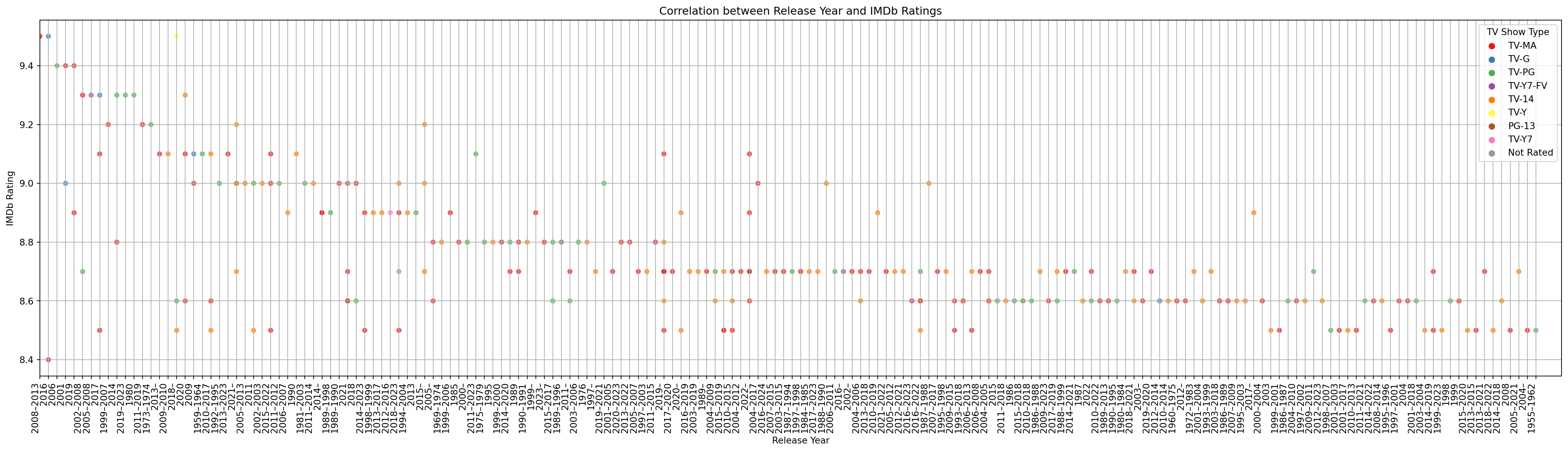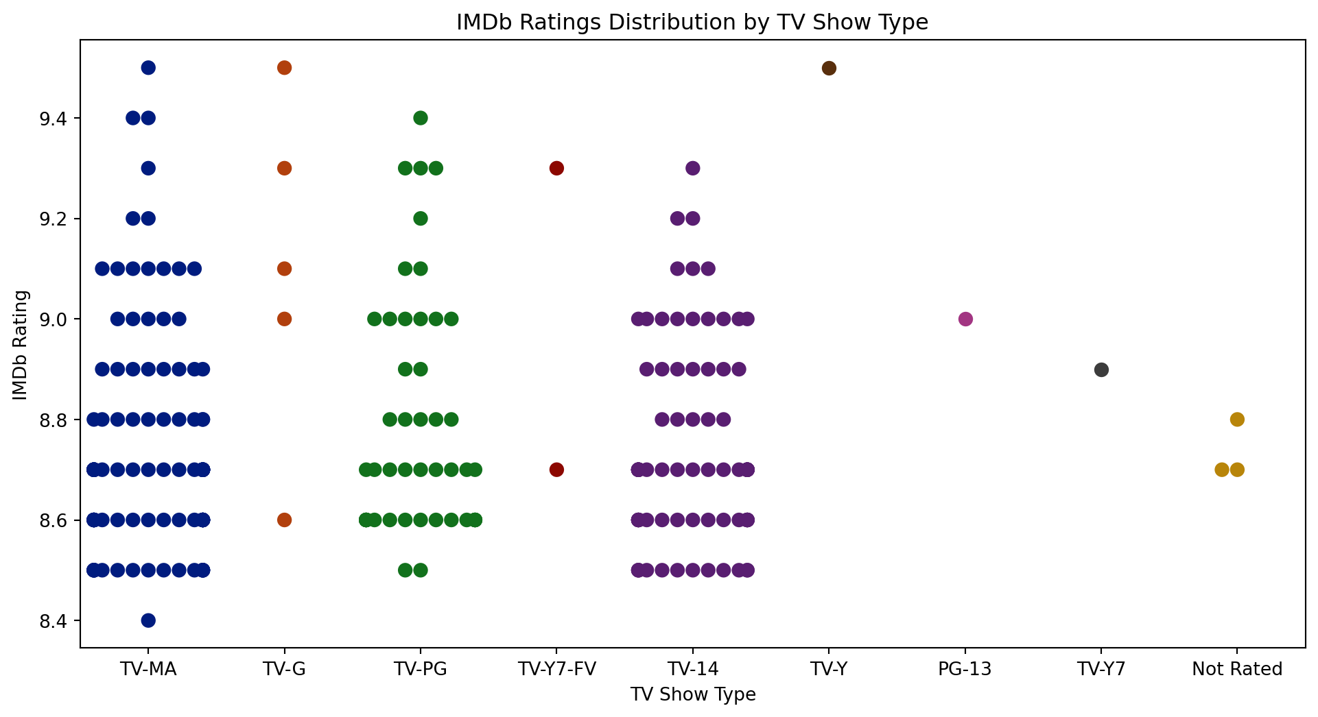 plt.title('IMDb Ratings Distribution by TV Show Type')