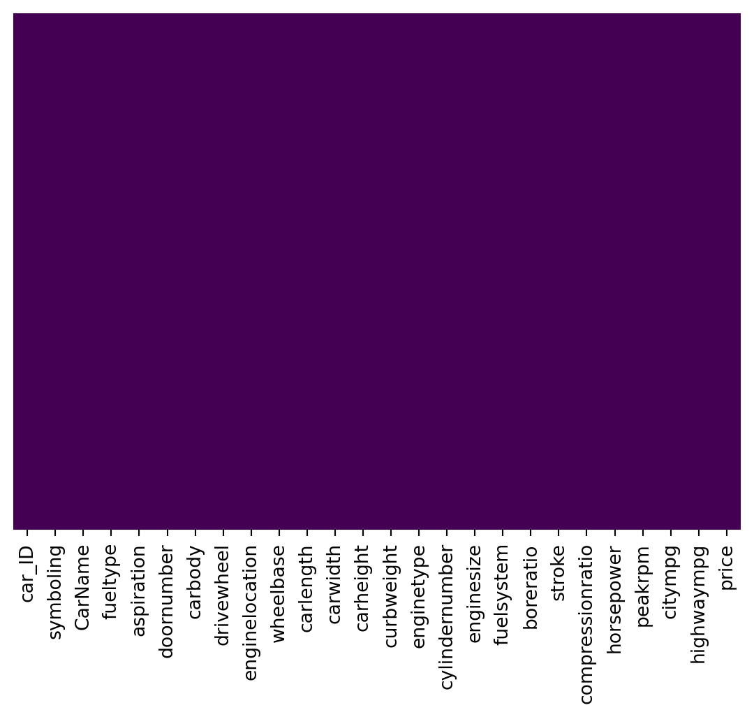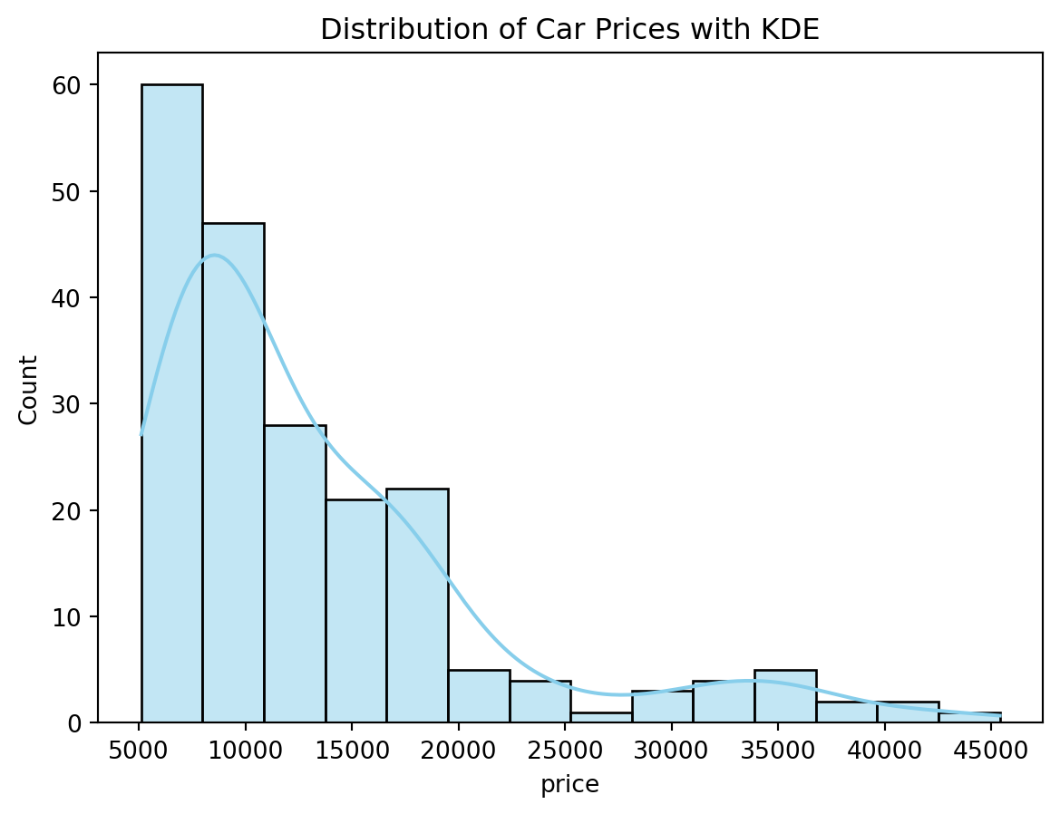 df.head()| car_ID | symboling | CarName | fueltype | aspiration | doornumber | carbody | drivewheel | enginelocation | wheelbase | ... | enginesize | fuelsystem | boreratio | stroke | compressionratio | horsepower | peakrpm | citympg | highwaympg | price | |